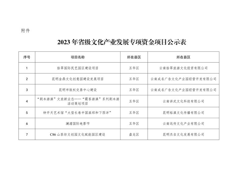 根据项目管理要求,现对2023年省级文化产业发展专项资金拟扶持项目进行公示,公示时间为5个工作日(2023年12月8日至12月14日)。公示期间,对公示企业、项目有异议的单位或个人,请向市委宣传部、市财政局反映。