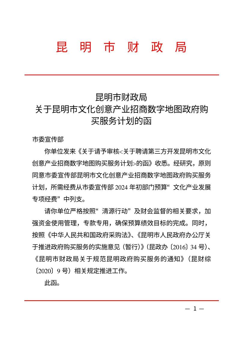关于聘请第三方开发昆明市文化创意产业招商数字地图购买服务计划