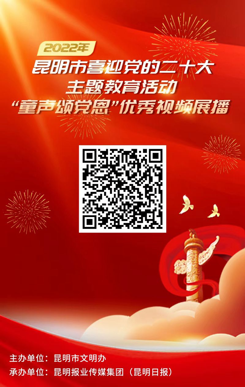 日起,由昆明市文明办主办、昆明报业传媒集团(昆明日报社)承办的2022年昆明市喜迎党的二十大主题教育实践活动“童声颂党恩”视频展播开始啦!