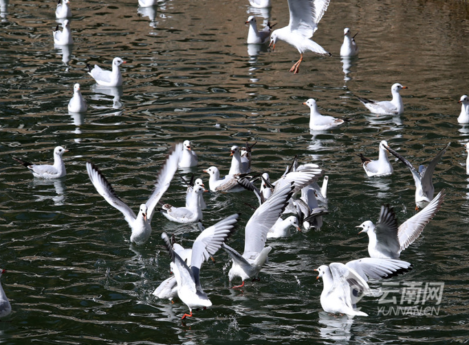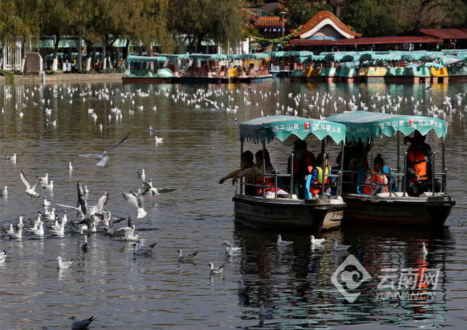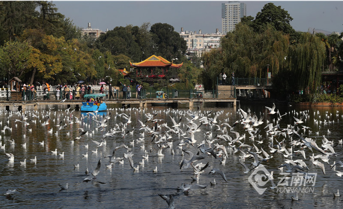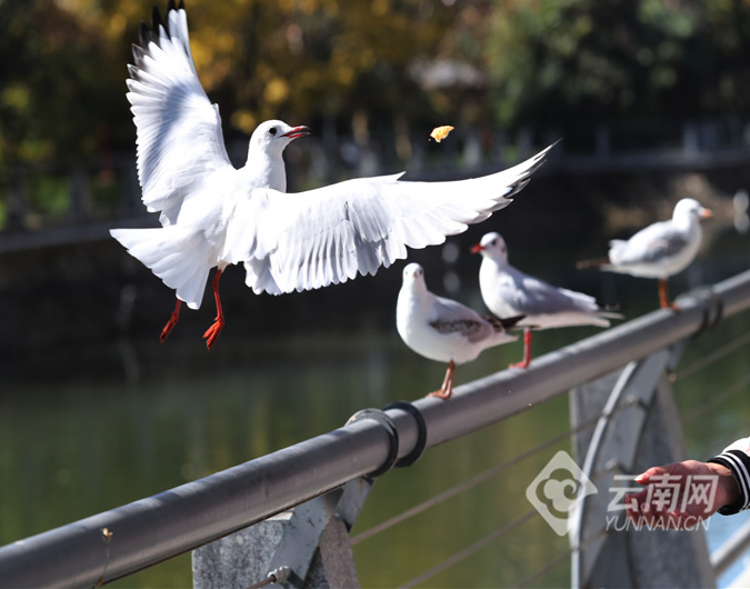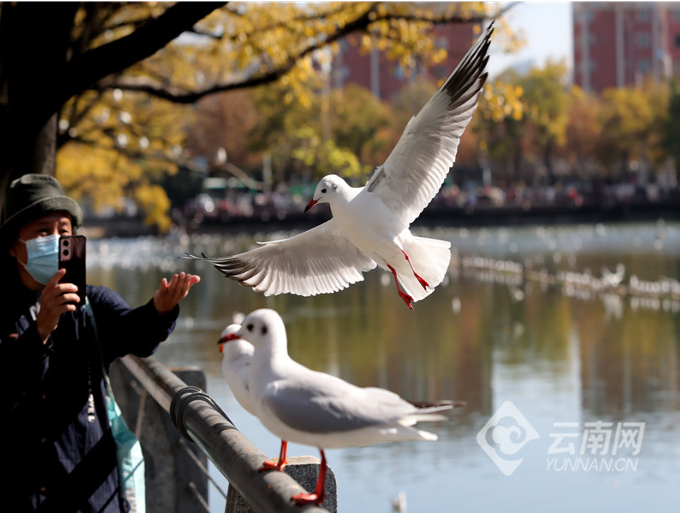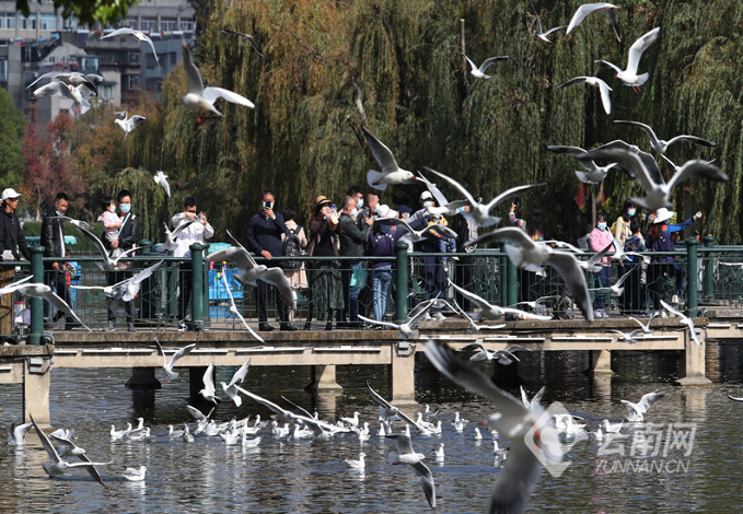连日来,在昆明翠湖公园和大观河沿线,大批来昆越冬红嘴鸥进入主城区水域觅食,红嘴鸥漫天飞舞,与前来观鸥喂鸥的市民嬉戏正欢,春城冬日处处呈现人鸥和谐的美丽景致。