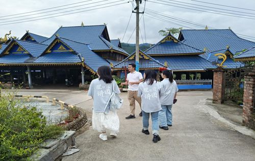 宣讲团成员到达磨憨尚冈村后,在当地开展了实地调研。尚冈村是昆明市托管磨憨后建设的一个具有民族特色的旅游村落,探索“醉美傣家”特色发展路子,当地独具特色的傣族建筑,别有一番韵味。托管昆明市后,当地推行“党员+N”网格治理模式,高质量打造边境幸福村升级版。
