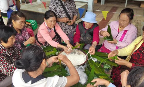 主办方精心策划并组织了包粽子大赛和绘制彩蛋、连连看挑战、投壶竞技等趣味互动游戏以及团扇浸染等七大主题活动。工作人员和志愿者们早早准备好了粽叶、糯米、绳子等材料,吸引了众多居民的热情参与。大家围坐在桌旁,一边包粽子,一边分享节日的欢乐,如同一家人共享欢乐时光,共同体验传统节日的温馨与快乐,不仅加深了邻里间的情感联系,更让居民们深刻感受到了端午文化的独特魅力。