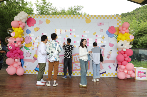 在呈贡区果逸花谷科普草坪,200名来自全市各机关、企事业单位单身青年职工纷纷在许愿墙上签上自己的姓名。主持人引导台下男女青年开展破冰暖场活动,随后通过现场设置的姻缘盒随机牵线组成对子,大家一起参与有奖集体游戏以及丢沙包、挤气球、套圈圈等各项积分小游戏。