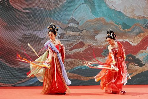 活动现场,各类文艺节目演出令人目不暇接。一位位身穿精美汉服的演员们款款走来,他们带来的汉服走秀《锦绣华裳》仿佛穿越千年时光,将中华服饰的典雅与韵味充分展现;敦煌舞以其独特的魅力,将优美的旋律和灵动的舞姿交织在一起,将观众带入一个神秘而瑰丽的世界;古风乐曲歌舞表演更是将人们带进了一个充满诗意的境界,让人们陶醉其中,静静享受此刻的美好。