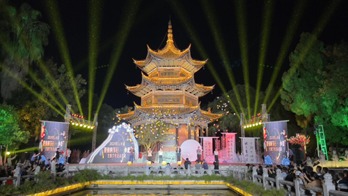 本次活动以“共此月圆时 同叙家国情”为主题,以月为媒,以水为镜,以蒙自南湖地标瀛洲亭为背景展开实景演出。活动晚会由“月涌南湖”“星月璀璨”“江月年年”三个篇章构成,情景乐舞《皓月当空》、歌舞《李白石榴诗》、音乐剧《弦歌不辍》等精彩剧目轮番上演。现场发布的蒙自市“美孃孃”“好大爹”“蒙小青”“南湖夜校”“红色小蜜蜂”等“文明天团”,通过精彩的演出再现了西南联大的精神之火,传递新时代向上向善的文明之风,赋予了传统节日新的内涵,让观众们感受到了节日的温馨、传统文化的魅力和跨越时空的温暖与力量。