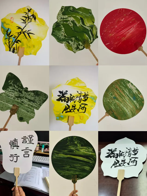 干部职工们积极动手,认真调漆料、精心染扇面,从起初的手法生疏,逐渐变得熟练自如。一把把制作精巧的扇子由此诞生,它们不仅承载着对节日的美好祝福,更让大家在手工劳作中收获了别样的乐趣,体会到匠心独运的意义。