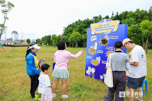 “荷风送爽映碧波?反诈入心护平安”防诈反诈主题宣传成为活动的又一大特色。“莲舟识诈?箭破迷局”射箭体验、“荷田套真?诚信无诈”套圈挑战等项目,将反诈知识巧妙融入趣味互动,打造出“全民反诈+文化传承”的特色宣传模式,让游客在赏荷玩乐中筑牢防范防线。